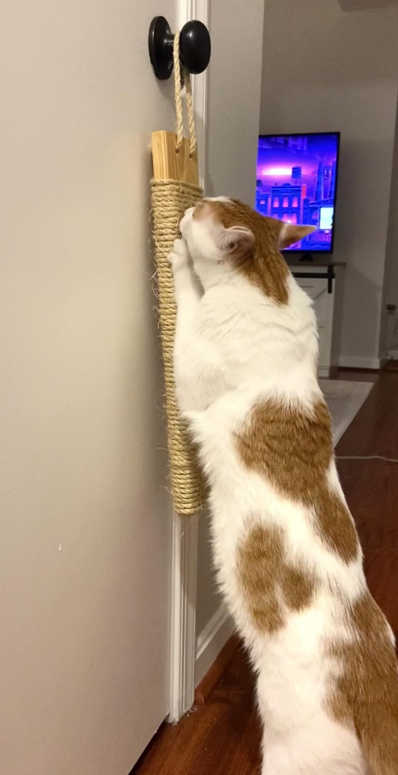 To promote scratching, you can add catnip or catnip spray to the rope portion of the hanging scratcher.