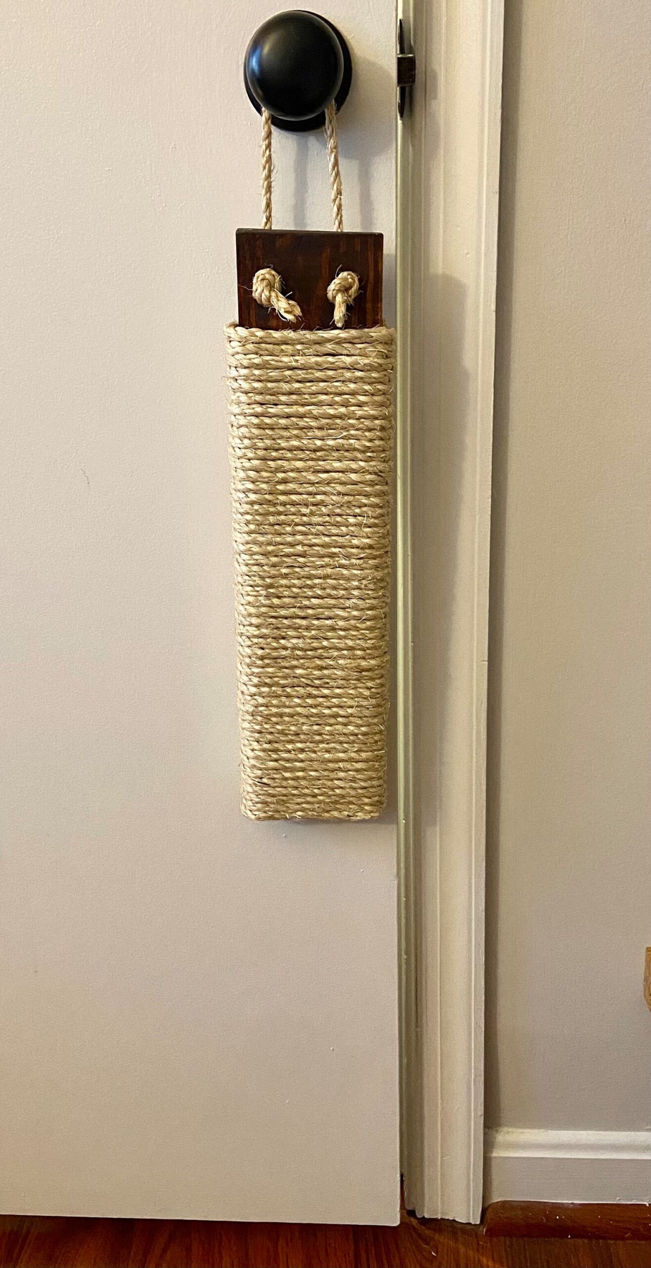 Your furry friend will be over the moon for this over the door knob scratcher! This scratcher will help deter your kitty from scratching furniture and rugs, keeping them engaged with thick and durable sisal rope. Hanging from the door promotes stretching, healthy scratching habits, and assists with claw maintenance.
