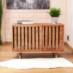 Clean lines, a natural wood finish, and vertical slats give it a premium aesthetic that elevates any room.